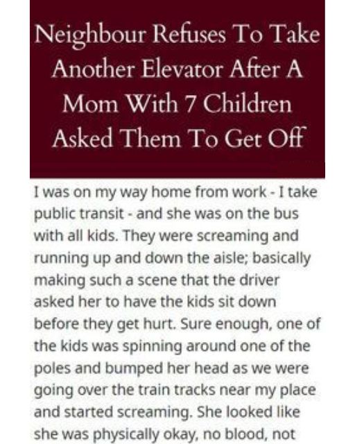 A Mom With 7 Kids Told Me To Get Off The ElevatorโSo She Could Ride It Alone