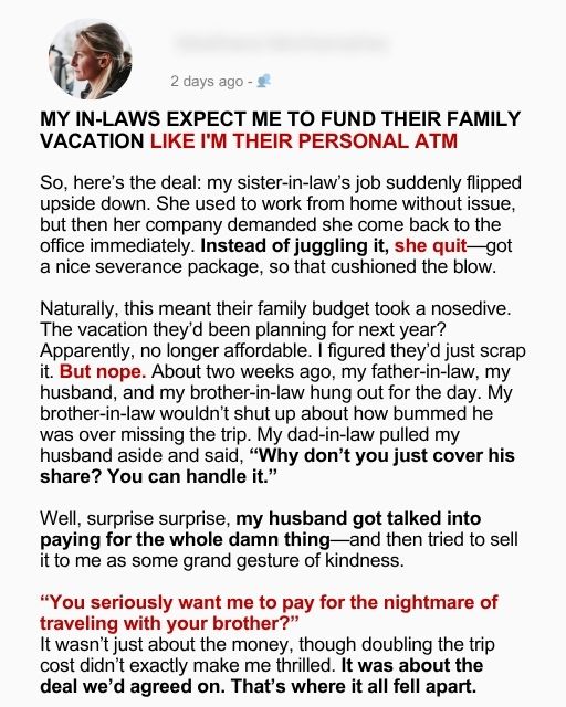 My In-Laws Expect Me To Fund Their Family Vacation Like I’m Their Personal Atm