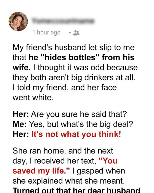 MY BEST FRIENDโS HUSBAND HID BOTTLES FROM HER โ HIS REASON SHOOK ME TO MY FOUNDATION