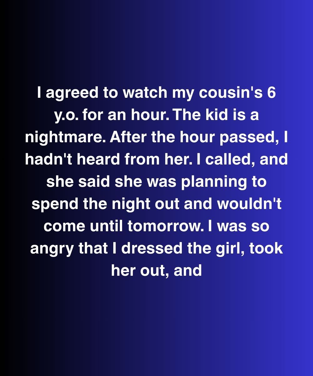 I Agreed To Watch My Cousinโs Kid For An HourโShe Never Came Back Until The Next Day