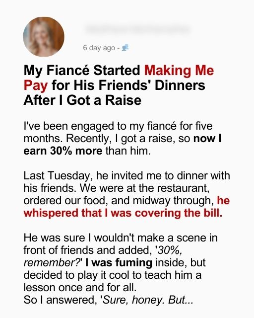 My Fiancรฉ Started Making Me Pay for His Friends’ Dinners After I Got a Raise