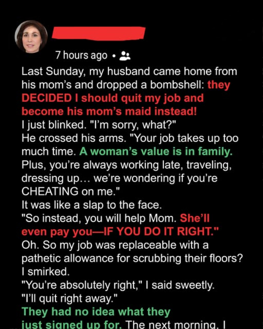 My Husband And His Mother Decided I Should Quit My Job And Become Her Maid
