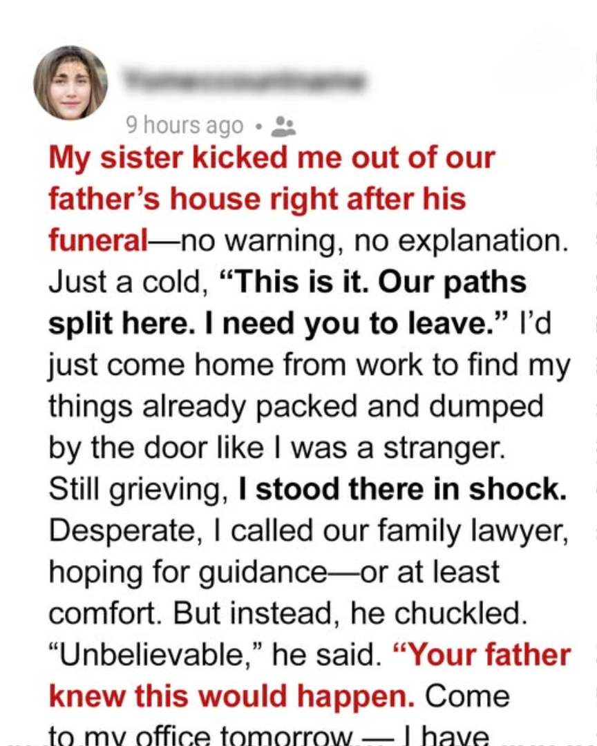 My Sister Kicked Me Out Of The House After Our Fatherโs Death โ But She Didnโt Know He Had Foreseen It
