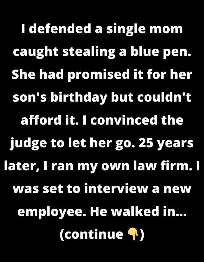 I DEFENDED A SINGLE MOM FOR STEALING A PENโ25 YEARS LATER, HER SON WALKED INTO MY OFFICE