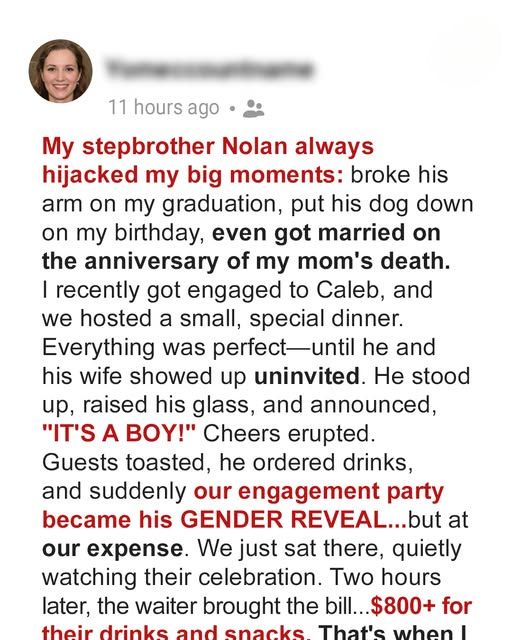 My Stepbrother Hijacked My Engagement Dinner with His Baby Gender RevealโSo I Sent Him a Fair Gift