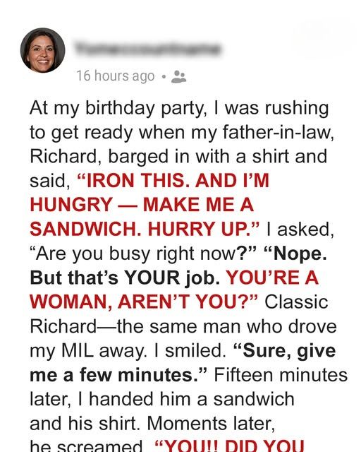 My FIL Handed Me His Shirt to Iron & Ordered Me to Cook at My B-Day Party as โItโs a Womanโs Jobโ
